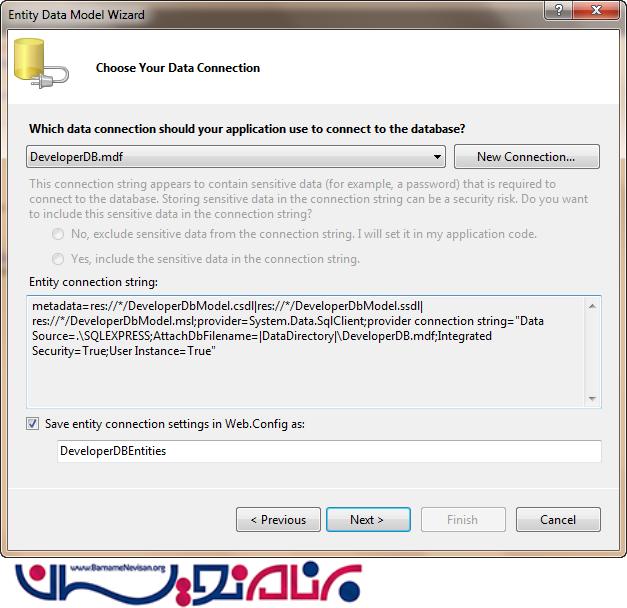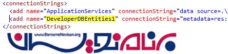 قبل از اینکه کار را ادامه دهیم، ابتدا نام Database Entity را در Web.config و زیر Connection String پیدا می کنیم.