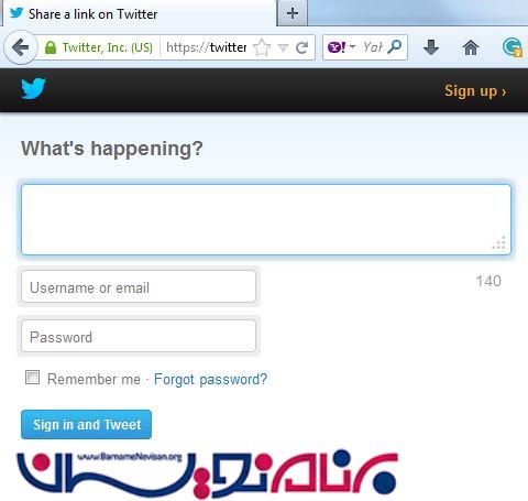 با کلیک روی لینک، یک popup باز می شود که Twitter را در اختیار ما قرار می دهد.