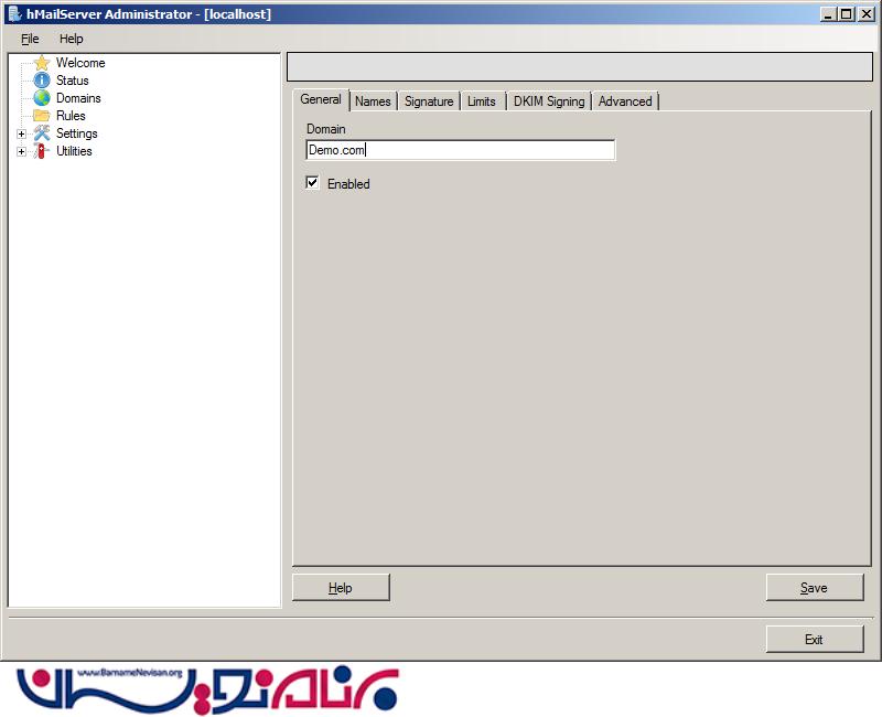 hMailServer را که حجم آن تقریبا 3MB است دانلود کرده و مراحل نصب آن را طبق این دستورالعمل دنبال نمایید.