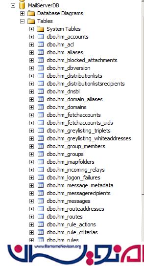 این مرحله، دیتابیسی با جدول های زیر در SQL Server ایجاد می کند. تمام تنظیمات مربوط به ایمیل در این دیتابیس می باشد.