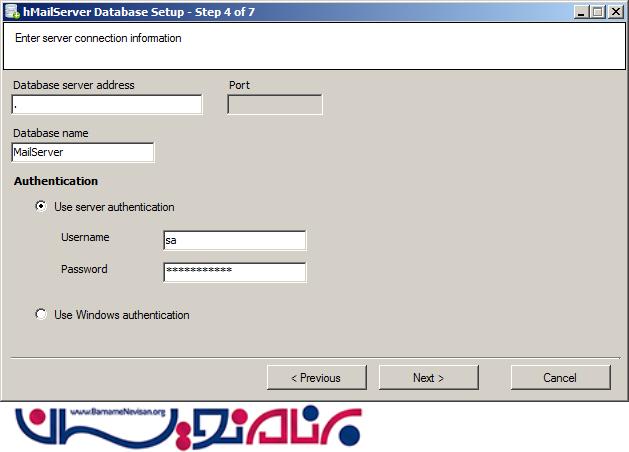 قدم بعدی تنظیمات Database می باشد. دیتابیس جایی است که همه تنظیمات در آن ذخیره می شود. این نرم افزار دیتابیس های زیر را پشتیبانی می نماید:
