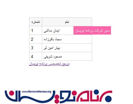 dt.Rows.Add(1, "ایمان مدائنی", "مدیر شرکت برنامه نویسان");