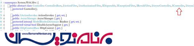 چرا که کلاس اولیه (Base) این کنترلرها که کنترلر تعریف شده توسط ما، از آن ارث بری می کند، اینترفیس IController را پیاده سازی می کند.