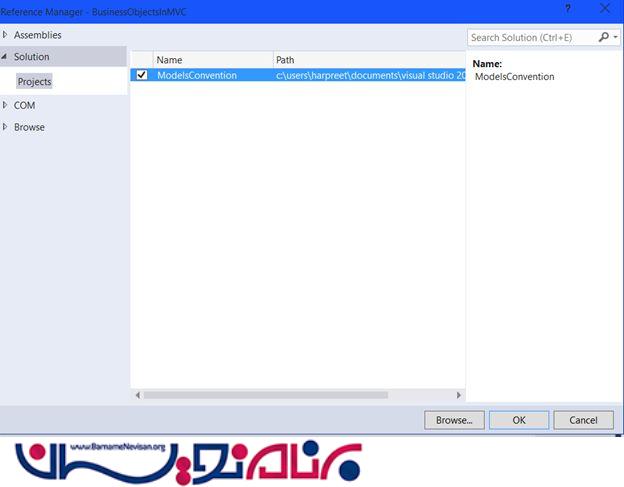 حال از این کتابخانه در پروژه خود استفاده می کنیم و برای استفاده از این کتابخانه نیاز داریم تا reference این class library را به پروژه خود اضافه کنیم.