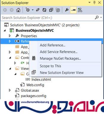 روی references راست کلیک می کنیم و گزینه Add reference را انتخاب می کنیم.