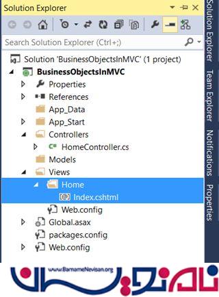 در Solution Explorer فولدر Views را باز می کنیم ،فایل Index.cshtml را که در فولدر دیگری ایجاد شده است راخواهیم دید.