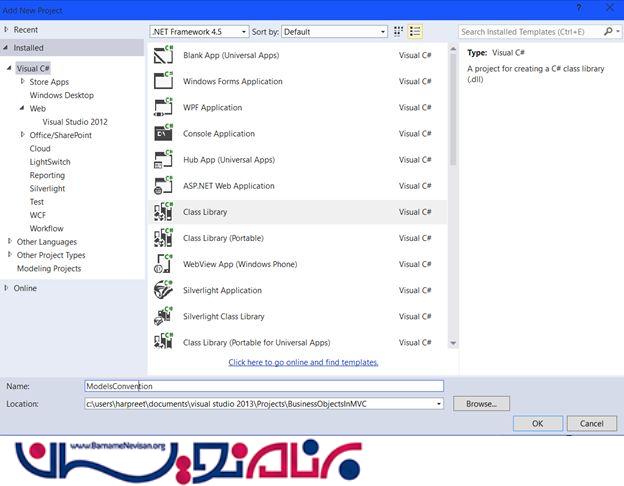این class library اکنون Model برنامه MVC ما است و ما می توانیم همه ی business logic یا کد را به آن اضافه کنیم تا داده را از دیتابیس یا از هر منبع داده ای که وجود دارد بازیابی کنیم.