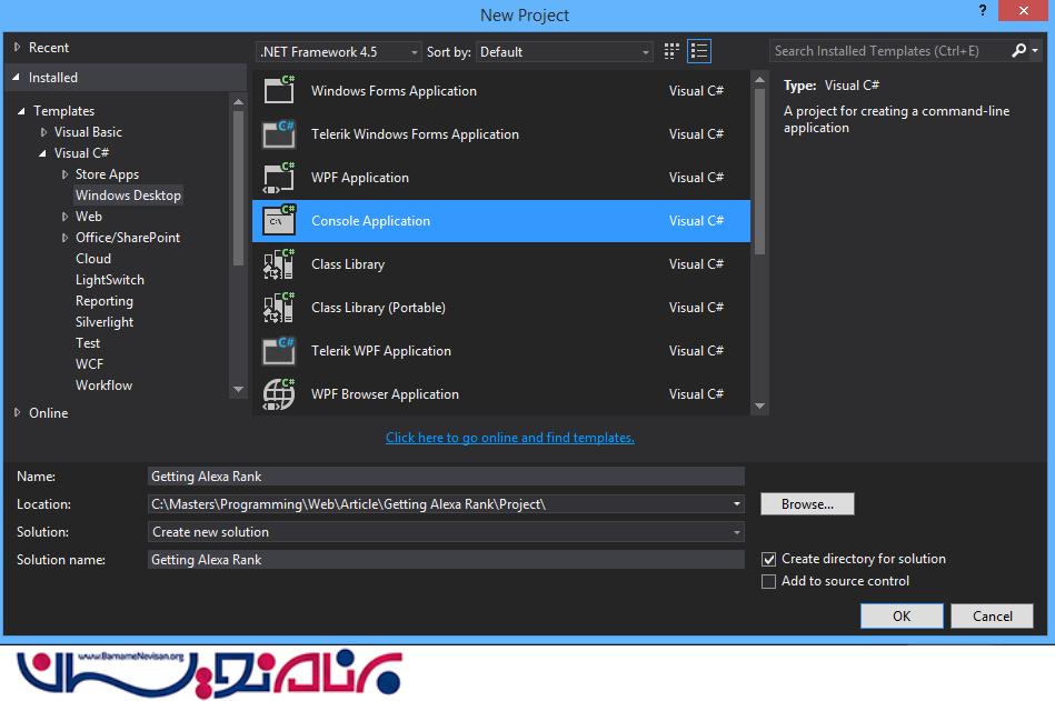 برای این کار ابتدا یک پروژه با زبان سی شارپ و به صورت کنسول ایجاد می کنیم.