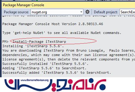 حالا می خواهیم داده های درون GridView را به PDF تبدیل کنیم. برای اینکار نیاز داریم که iTextsharp را نصب کنیم. بنابراین، دستور زیر را در کنسول Package Manager اجرا کنید.