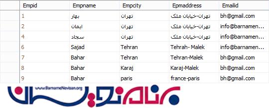 اگر نام درون جدول وجود داشته باشد، داده ها درون GridView نمایش داده می شوند. مانند تصویر زیر:
