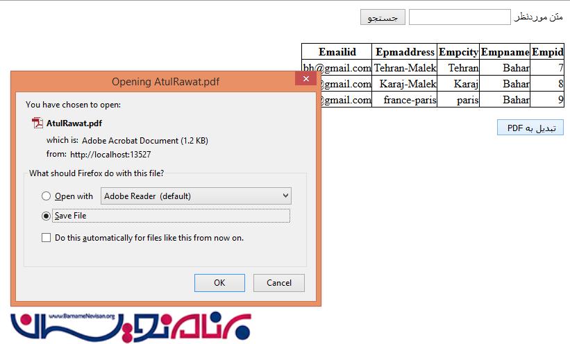 جستجو و نمایش اطلاعات در GridView و تبدیل خروجی به فایل PDF در ASP.NET