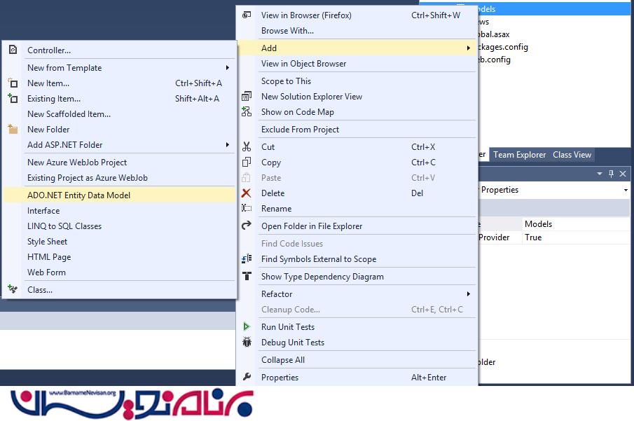 حال وقت اضافه کردن مدل است. برای این کار مانند زیر عمل نمایید :