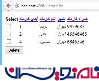 نحوه نمایش داده در WebGrid و حذف چند ردیف از آن توسط CheckBox در MVC