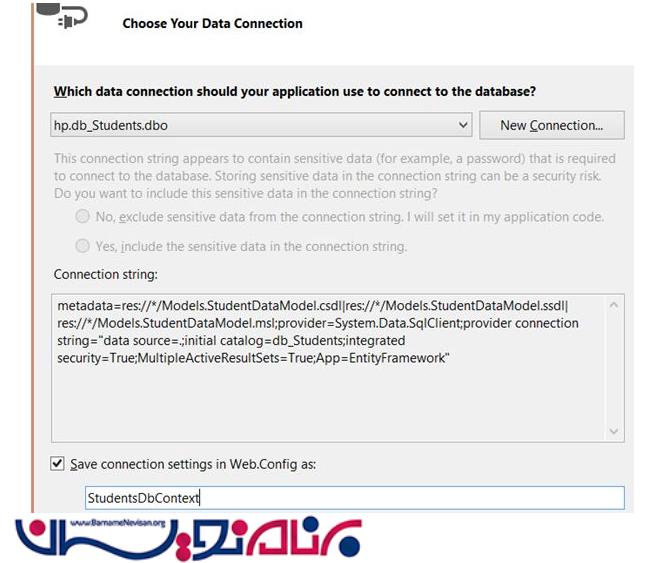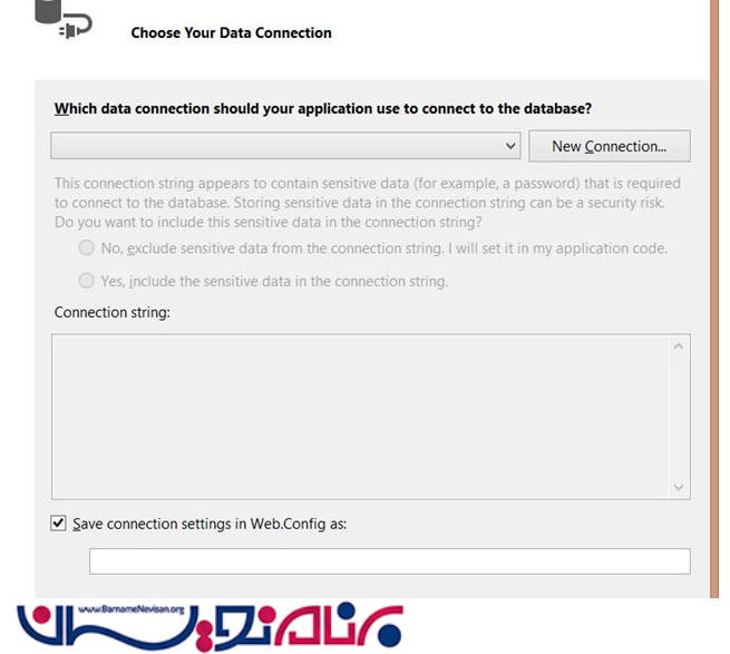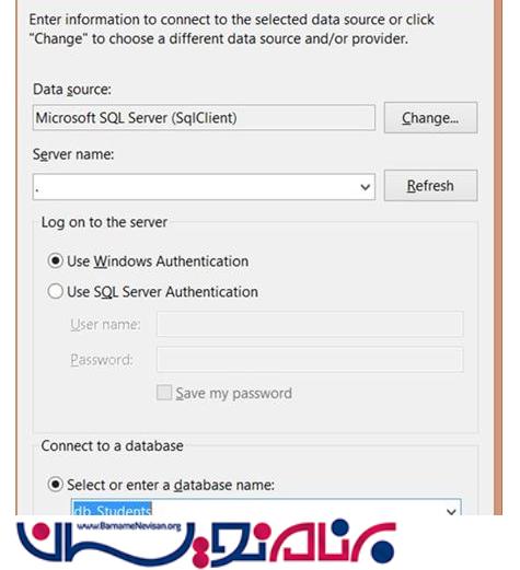 دراین مرحله باید نام بانک اطلاعاتی را که در Sql ساختیم را انتخاب کنید