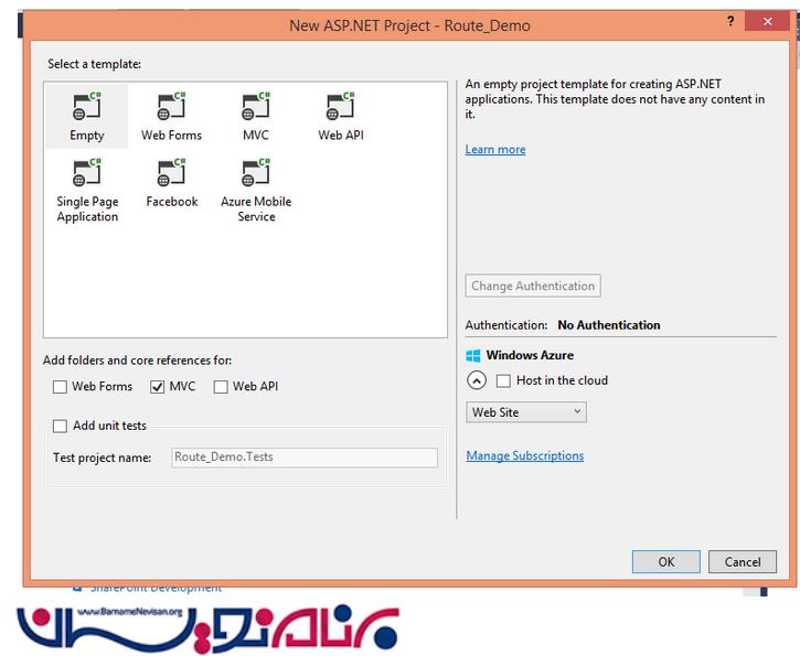 حال شما در این مرحله یک پروژه خالی از نوع MVc دارید
