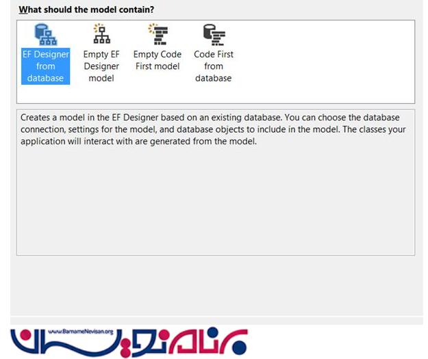 در این مرحله ابتدا EF Designer را انتخاب کرده و Next را میزنیم