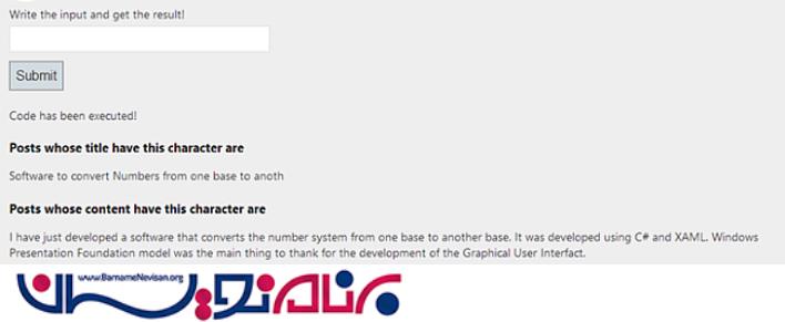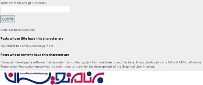 همانطور که می بینید در نتایج بالا، حداقل یک بار کلمه نرم افزار آمده است. تنها محتواهایی که به کوئری درج شده مربوط بودند، لیست شدند. این وب سایت هم عنوان و هم محتوا را برای کوئری مربوطه جستجو می کند. می توانید رابط کاربری خود را به شکل بهتری در آورید یا فقط عنوان را نشان دهید یا محتوا و یا هر دو کنار هم، مانند کاری که ما انجام داده ایم.