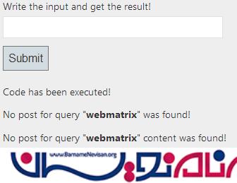 این کد توسط ASP.Net تولید شده است که به شما نشان می دهد که هیچ محتوایی درباره "Web Matrix" ندارید و نیاز است که پست هایی در این باره به دیتابیس خود اضافه کنید تا کاربر با جستجوی این عبارت به نتایجی دست پیدا کند.