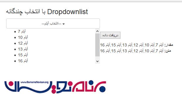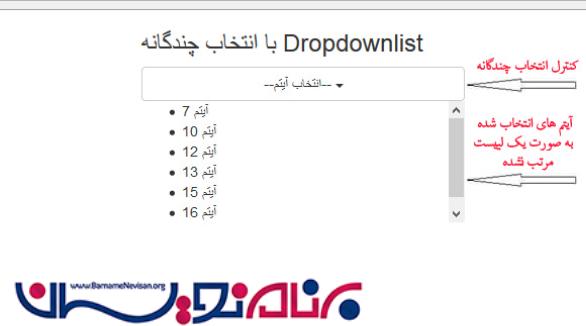 آیتم هایی از dropdownlist را انتخاب کنید و می توانید موارد انتخاب شده را پایین این کنترل در یک لیست مشاهده کنید.