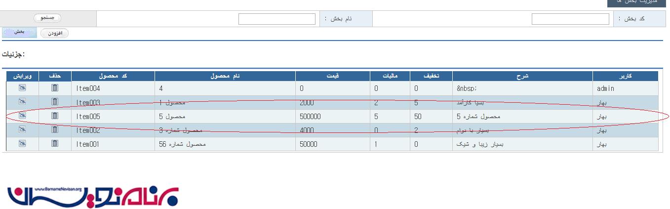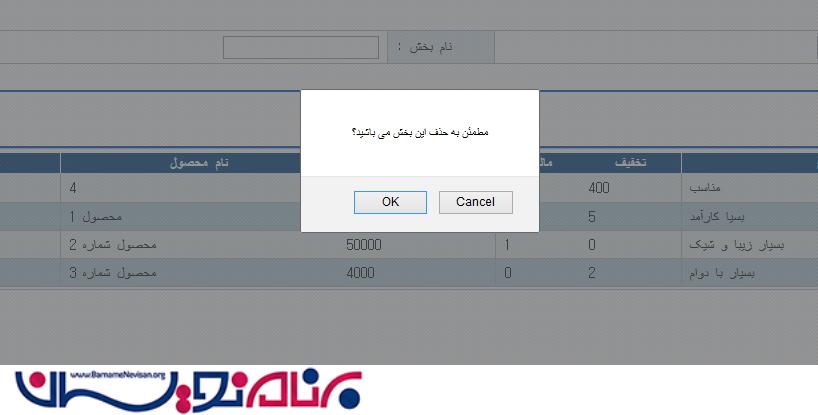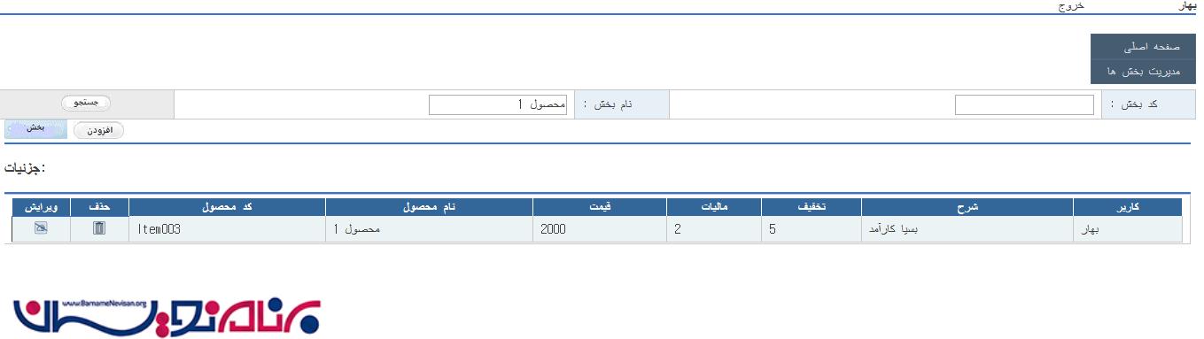 در صفحه Master دو منو داریم. صفحه اصلی و مدیریت بخش ها. در منوی مدیریت بخش ها، کاربر می تواند بخش ها را جستجو کرده و کارهای insert, Edit,delete را انجام دهد.