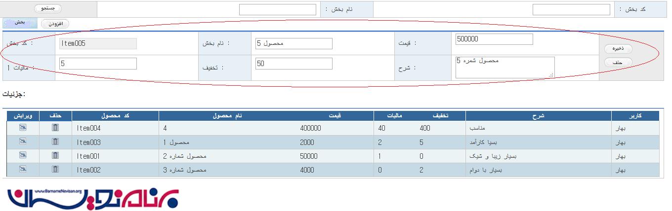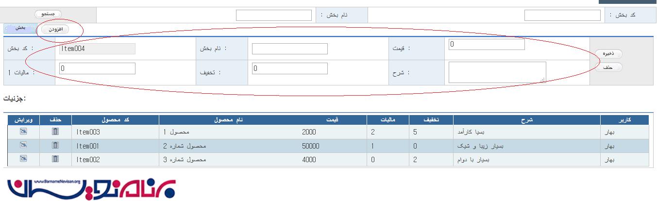 اضافه کردن item جدید : کاربر می تواند داده های خود را وارد کرده تا یک رکورد جدید در بانک اطلاعاتی اضافه و ذخیره شود.