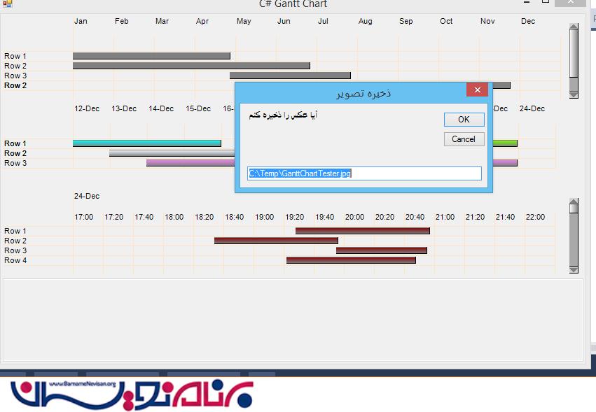 دوشنبه 30 شهریور 1394در این مقاله قصد داریم آموزشی درباره نحوه ایجاد نمودار گانت در سی شارپ و همچنین نحوه ذخیره فیزیکی نمودار بپردازیم.