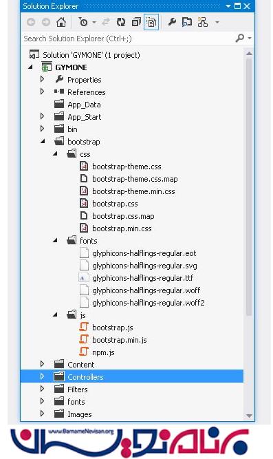 حال فولدر Bootstrap را مشاهده کنید که شامل همه فایل های js و css اضافه شده به برنامه میدهد.