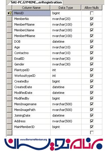 این جدول شامل تمام اطلاعات مورد نیاز برای ثبت نام میباشد.
