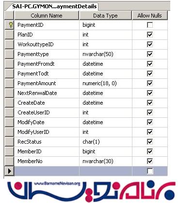 این جدول شامل اطلاعات پرداخت کاربران می باشد وMemberID به عنوان کلید خارجی در این جدول است .