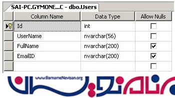 این جدول نام کاربری و ایمیل را از کابر میگیرید