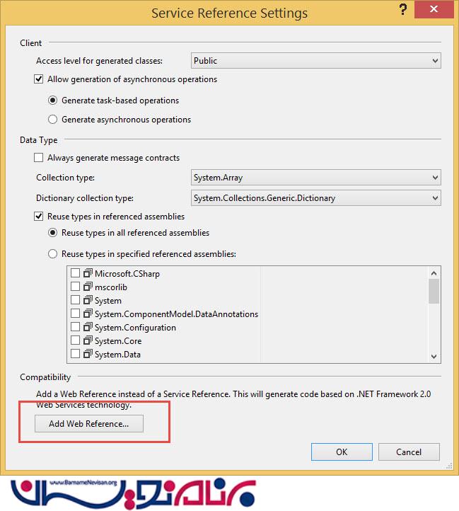 در پنجره باز شده گزینه Add Web Refrence را انتخاب کنید