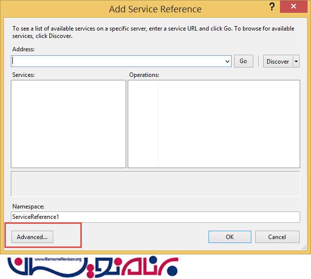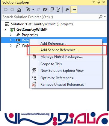 روی Refrences کلیک راست کنید و گزینه AddServiceRefrence را کلیک کنید