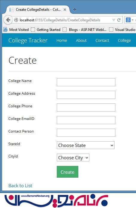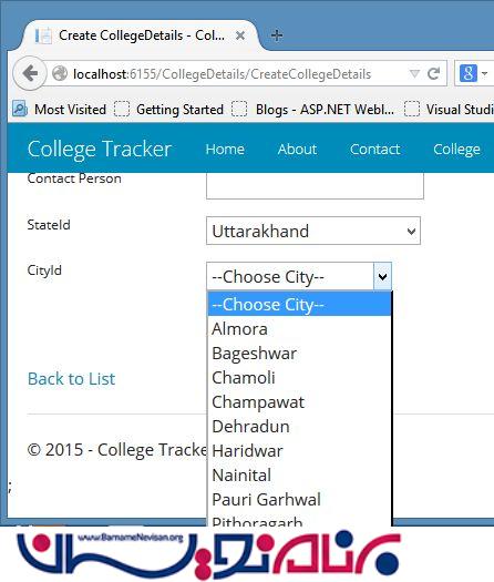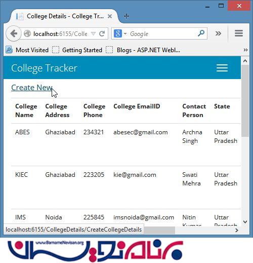 کنترلر "CollegeDetails" را با کدهای زیر تغییر می دهیم.