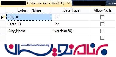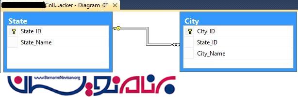 دو جدول با نام های State و City مانند تصاویر زیر می سازیم.