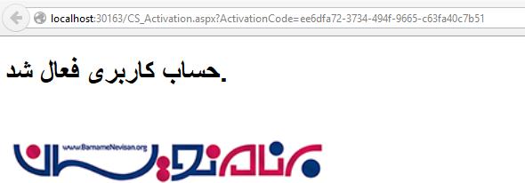 زمانی که کاربر لینک فعال سازی را دریافت کرد وارد یک صفحه می شود که اگر کاربر اعتبار داشته باشد، حساب کاربری آن فعال خواهد شد.