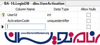یک جدول به نام UserActivation در پایگاه داده می سازیم.