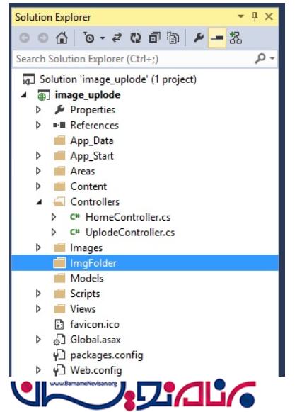 در Solution Explorer یک کنترلر به نام Uploadcontroller و یک پوشه به نام ImgFolder داریم.