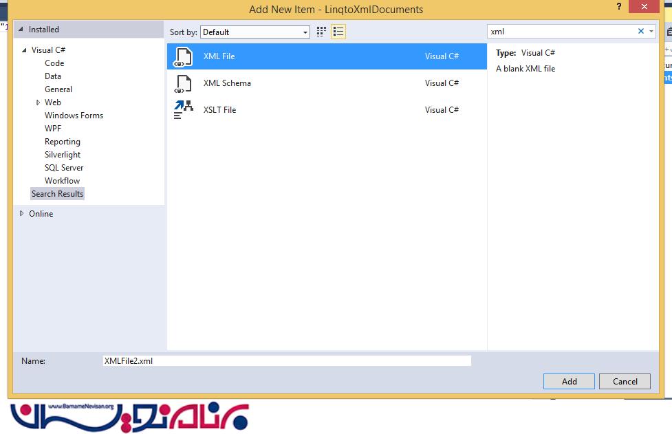 لازم بذکر است برای کار با سند XMl فضای نام System.XML.LINQ; را به برنامه اضافه کنید