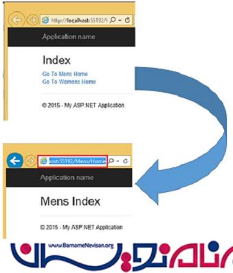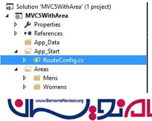 همانطور که ذکر شد Area روشی برای تقسیم و جداسازی ماژول های بزرگ در برنامه می باشد. هنگامی که یک Area به پروژه اضافه می کنید، مسیری برای Area در فایل AreaRegistration ایجاد میشود. این مسیر درخواست ها را براساس URL به Area می فرستد. ;()AreaRegistration.RegisterAllAreas