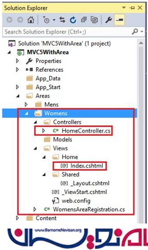 این مراحل یک پوشه با نامی که برای Area در نظر گرفتیم به برنامه اضافه می کند. که شامل تمام پوشه های Model ، View و Controller می باشد.