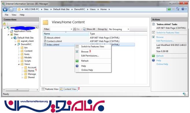 مرحله 3: کار شما تقریبا تمام شده است! اما تنها چیزی که باقی می ماند، جستجوی(Brows) وب سایتی است که Publish شده است. این جایی است که بسیاری از برنامه نویسان و توسعه دهندگان نرم افزار مرتکب اشتباه می شوند(به خصوص کسانی که در حوزه ASP.Net MVC تازه کار هستند ).