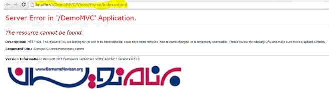 به منظور browse کردن برنامه کاربردی MVC شما باید مسیر زیر را در فرم ذکر کنید که به طور پیش فرض مشخص شده است: