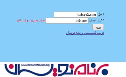 زمانی که ما صفحه را اجرا می کنیم وجود داشتن ایمیل در بانک اطلاعاتی را بررسی می کند. اگر ایمیل وجود داشته باشد پیغام زیر نمایش داده می شود: