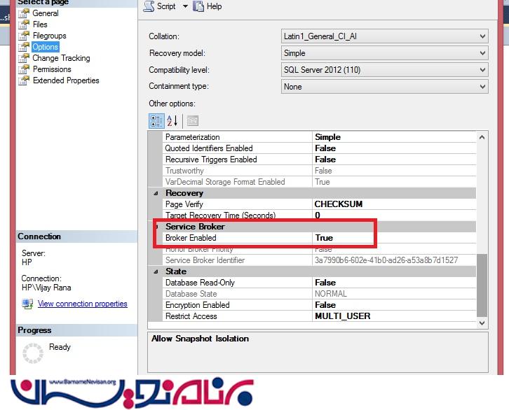 Enable Broker رادیتابیس true تنظیم می کنیم.