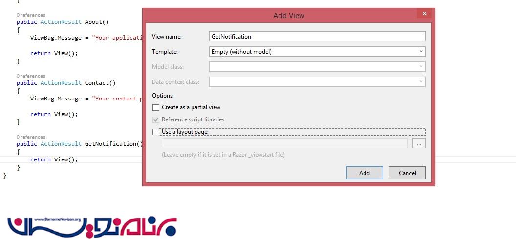 اسکریپت SignalRرا در GetNotification.cshtml اضافه کنید: