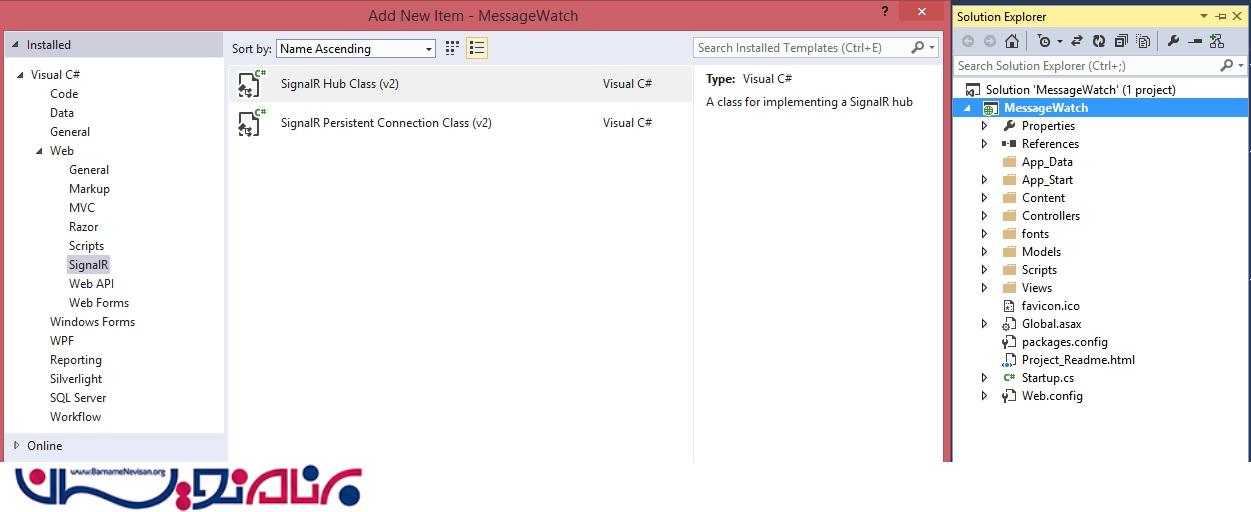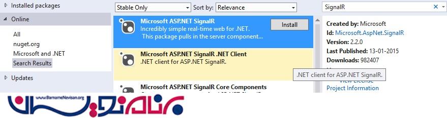 آنلاین Microsoft Asp.NET SignalR را انتخاب می کنید به صورت تصویر زیر: