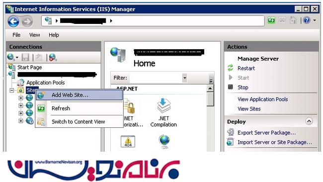 بر روی سایت راست کلیک کرده و یک وب سایت اضافه کنید.