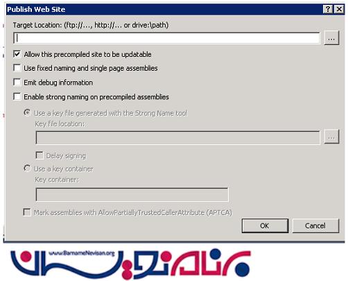 یک مکان ذخیره سازی برای فایل publish شده تعیین کنید.
