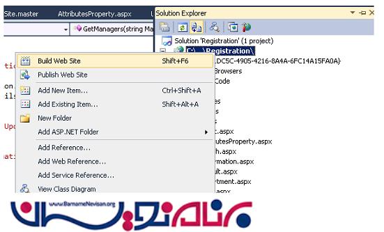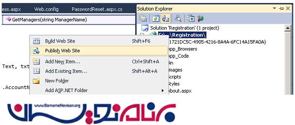 در Solution explorer بر روی نام برنامه راست کلیک کرده و وب سایت خود را بسازید.