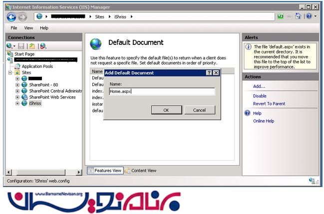 در اینجا ما Home.aspx را به عنوان صفحه پیش فرض اضافه می کنیم.